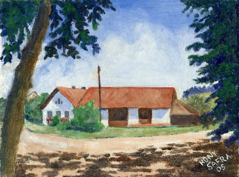 Aby se dostalo na všechny vnuky a vnučky, maloval jsem to třikrát. Reálná předloha je upravena dle vzpomínek pamětníků, neboť stavení již není