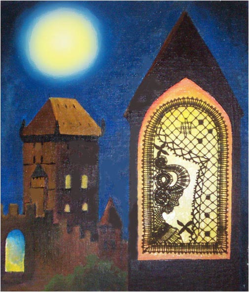 Kombinace paličkované krajky a olejomalby