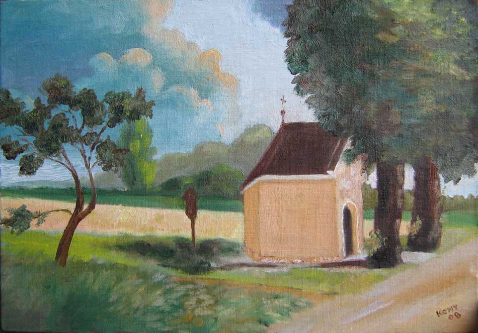 Malováno v plenéru na Dřevohostickém výtvarném létu.