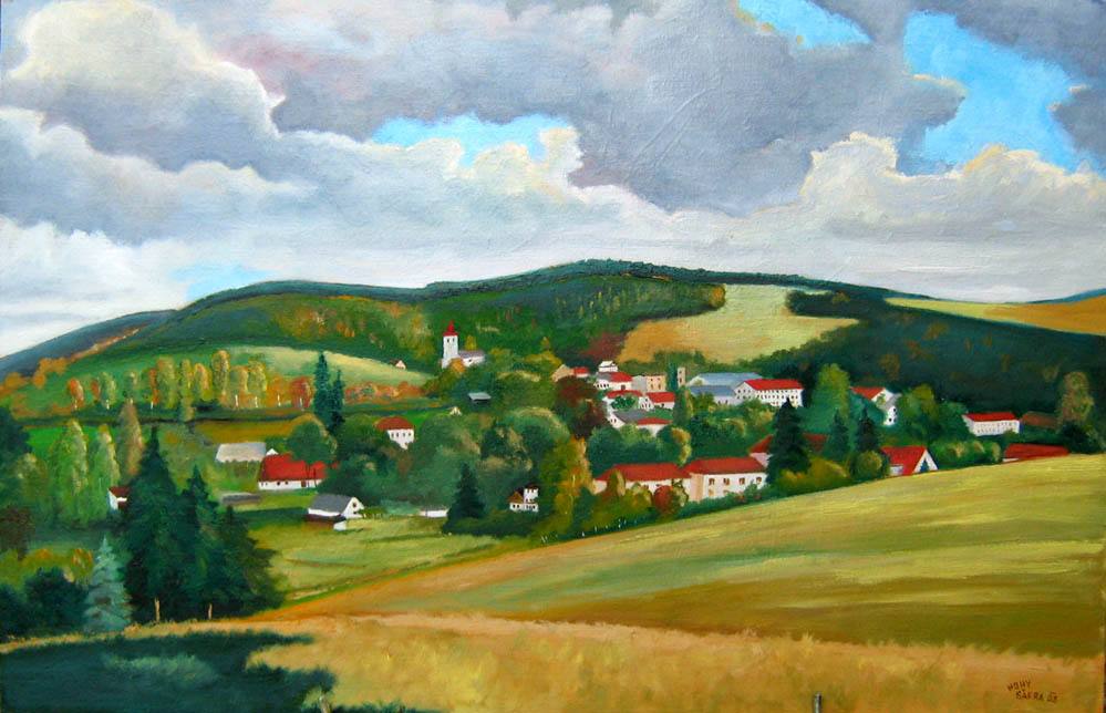 Malováno na zakázku s volným zadáním "Olešnice v Orl. horách z okolních kopců"