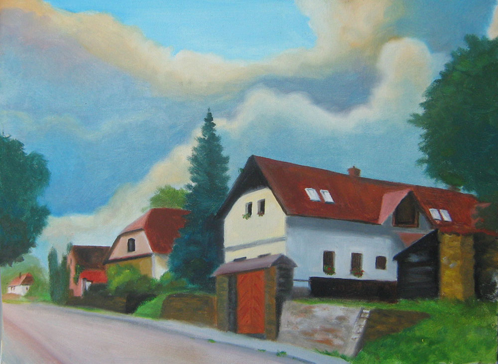 Malováno u příležitosti malířského plenéru Doudlebách r. 2009.