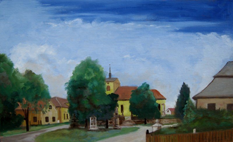 Prodáno. Obraz vystaven v úředních místnostech obecního úřadu v Dolním Přímu.