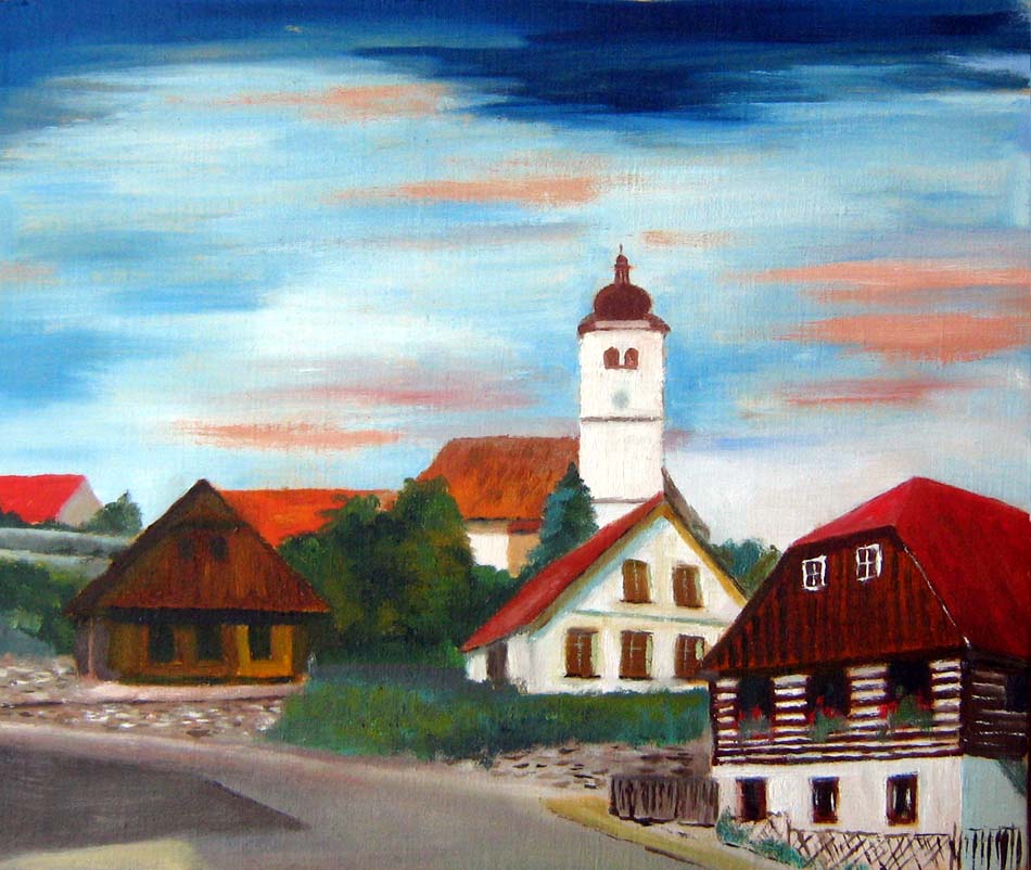 Olej na plátně/sololit Malebné město si zahrálo v seriálu "F.L.Věk",